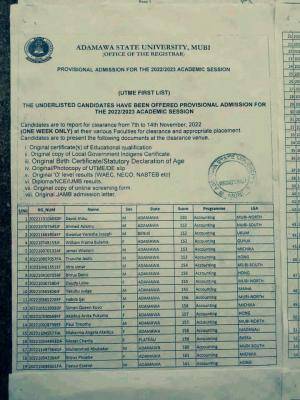 This is to inform all prospective UTME students of Adamawa state University that take part in the school’s Post-Utme screening exercise that the First Batch Admission List for the 2022/2023 session is out.