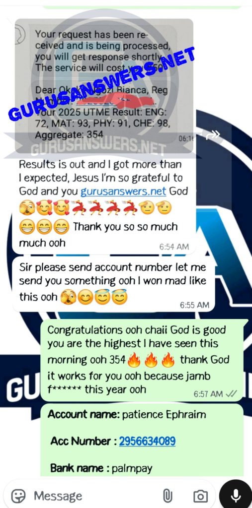 SHOW ME A CANDIDATE THAT SUBSCRIBED WITH Gursanswers LAST YEAR AND I WILL SHOW YOU THAT THE CANDIDATE SCORED 280 AND ABOVE AT A SITTING, THIS IS BECAUSE WE KNOW WHAT WE’RE DOING AND WE’RE VERY GOOD WHEN IT COMES TO JAMB EXPO RUNZ.!!!!!!!