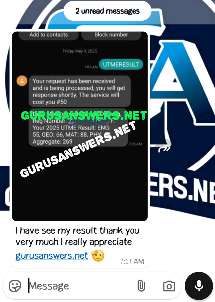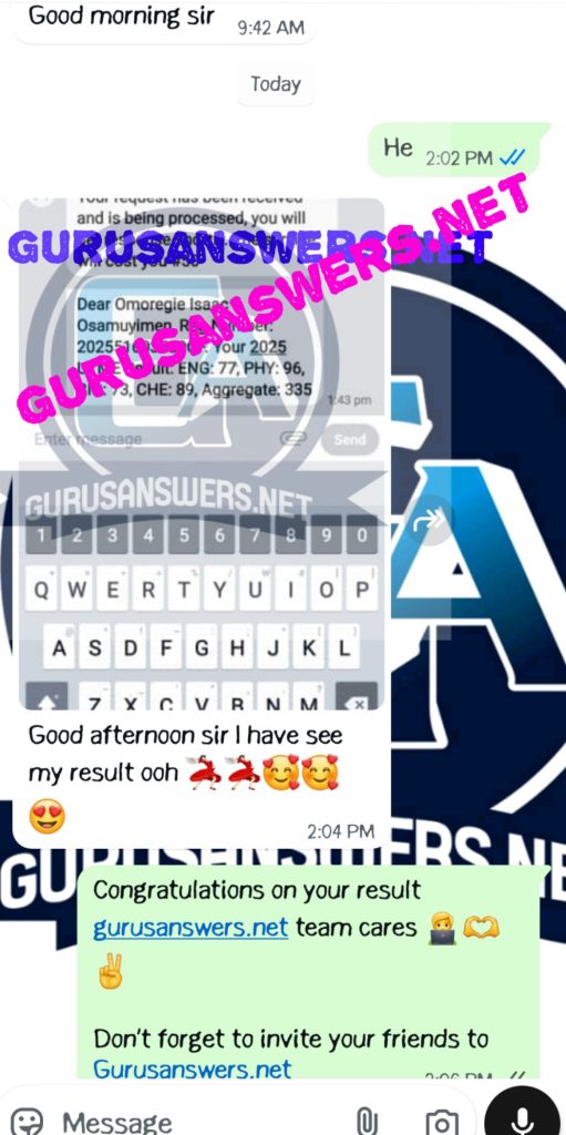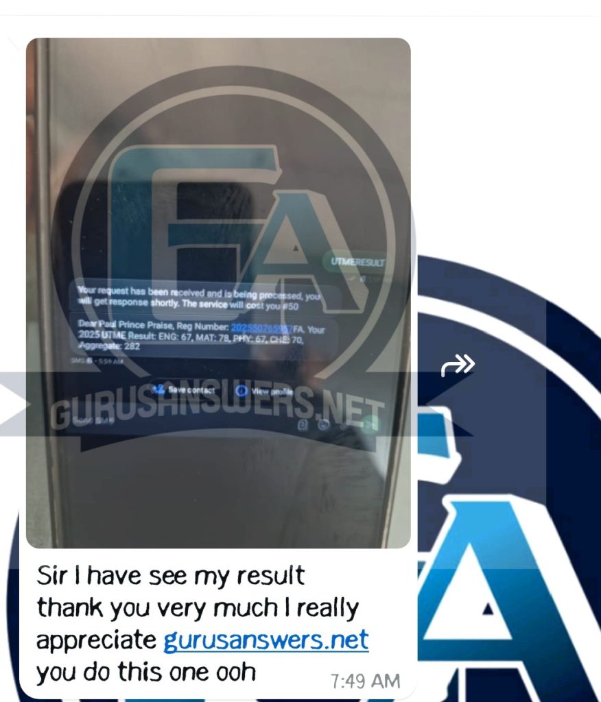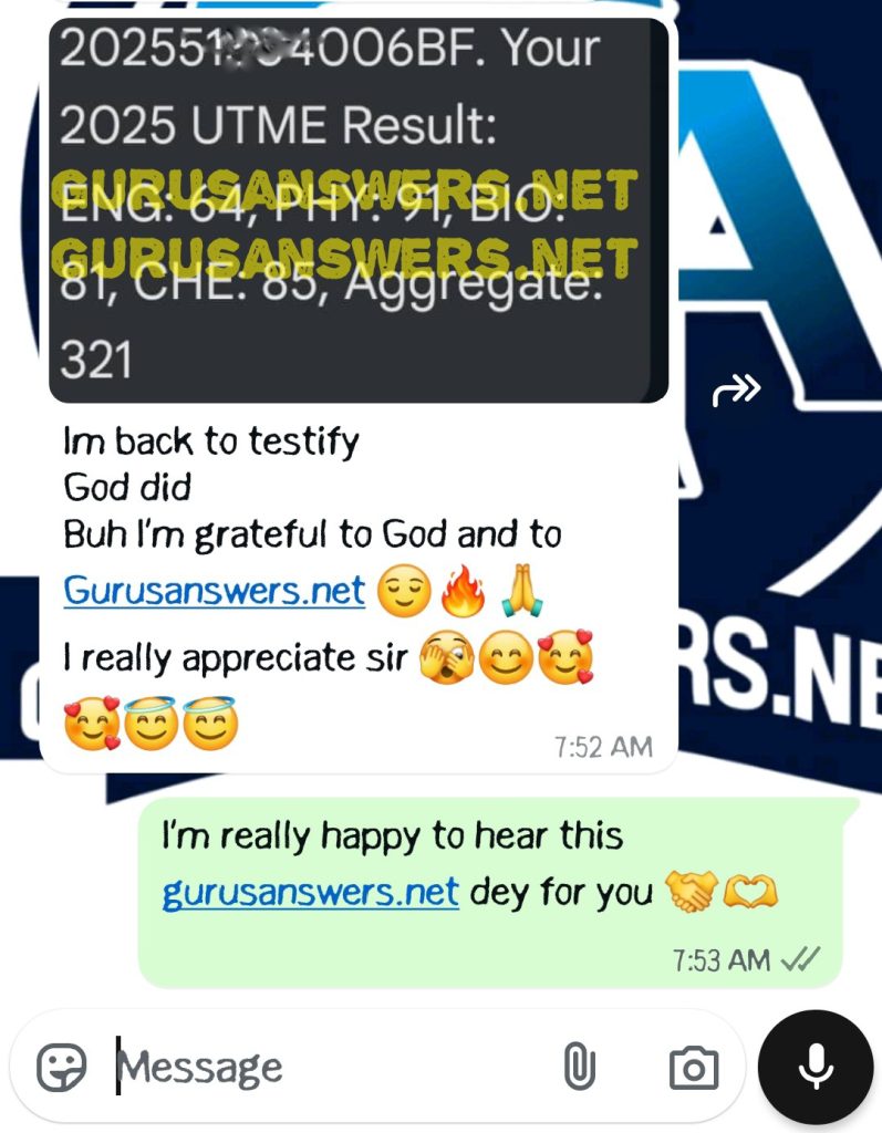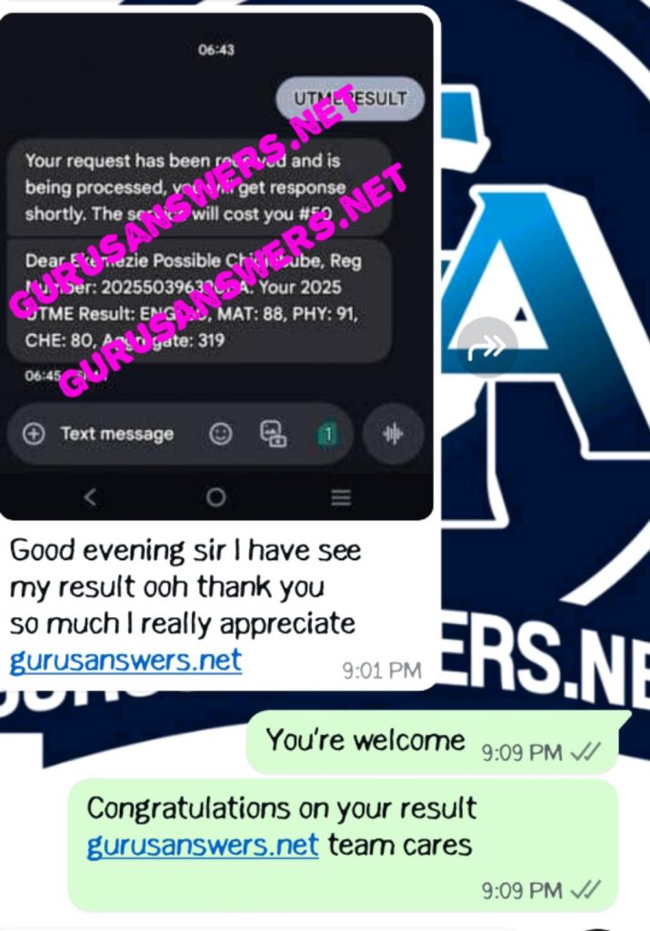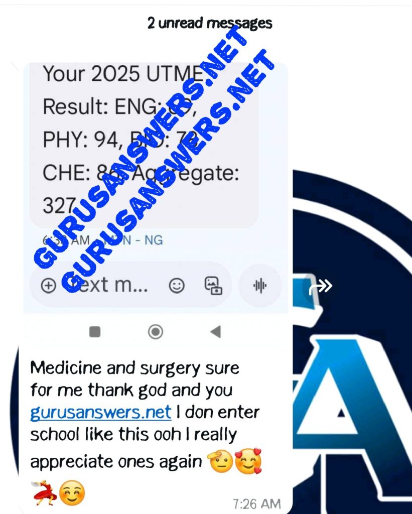 SHOW ME A CANDIDATE THAT SUBSCRIBED WITH Gursanswers LAST YEAR AND I WILL SHOW YOU THAT THE CANDIDATE SCORED 280 AND ABOVE AT A SITTING, THIS IS BECAUSE WE KNOW WHAT WE’RE DOING AND WE’RE VERY GOOD WHEN IT COMES TO JAMB EXPO RUNZ.!!!!!!!