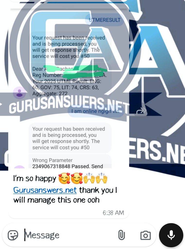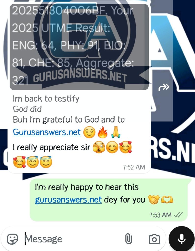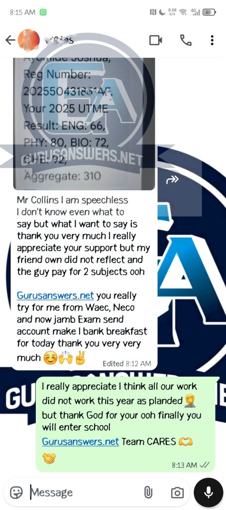 Dear 2026 Jamb Candidate , My name is Mr Collins proudly owner of Gurusanswers all time No.1 online JAMB Expertise, I have mapped out working strategy to score 280-320 in 2026 jamb.Who Said 2026 jamb CBT RUNZ Is Impossible?